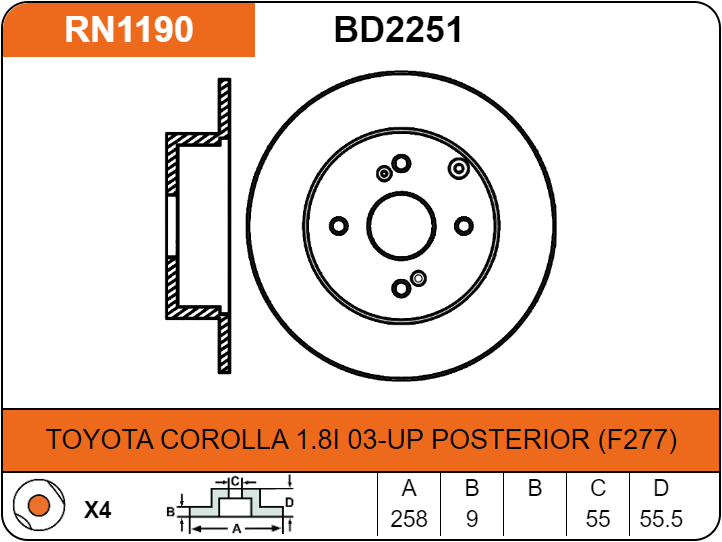TOYOTA COROLLA 1.8I 03-UP POSTERIOR (F277)